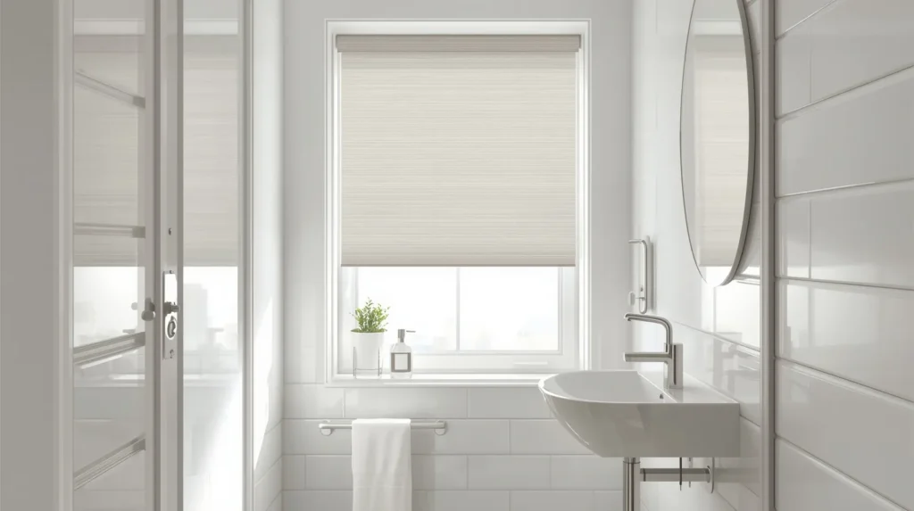 Small bathrooms need smart planning. In a tight room, every choice matters, including the blind. The right blind can make a cramped room feel lighter and more open.