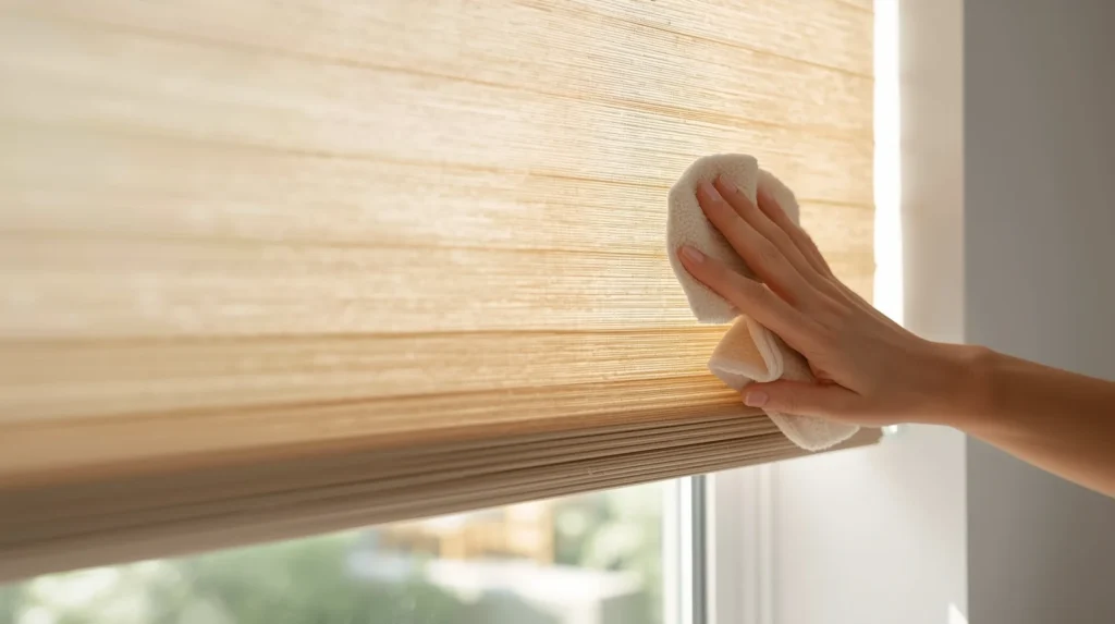 Avoid sharp brushes or harsh cleaners. These items can damage the fabric and shorten the life of the blinds. Use cleaners that are safe for delicate fabrics. They protect the softness of the material and remove stains without causing harm.