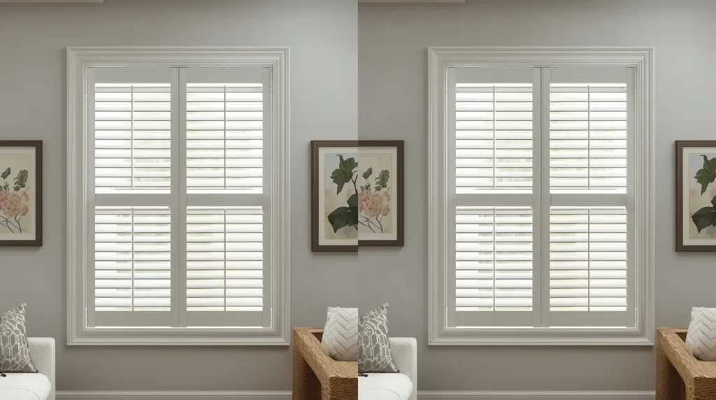 Another difference is how much light enters the room. Wider louvers let in more natural light. Narrow louvers allow less light. For bright rooms, people prefer plantation style.