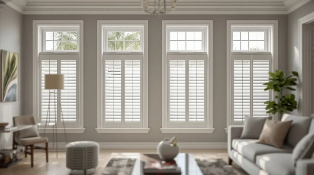 Plantation style shutters let you tilt the louvers to get the exact amount of light you want. You can create a soft glow or brighten the room fully. This helps you enjoy natural light without glare.